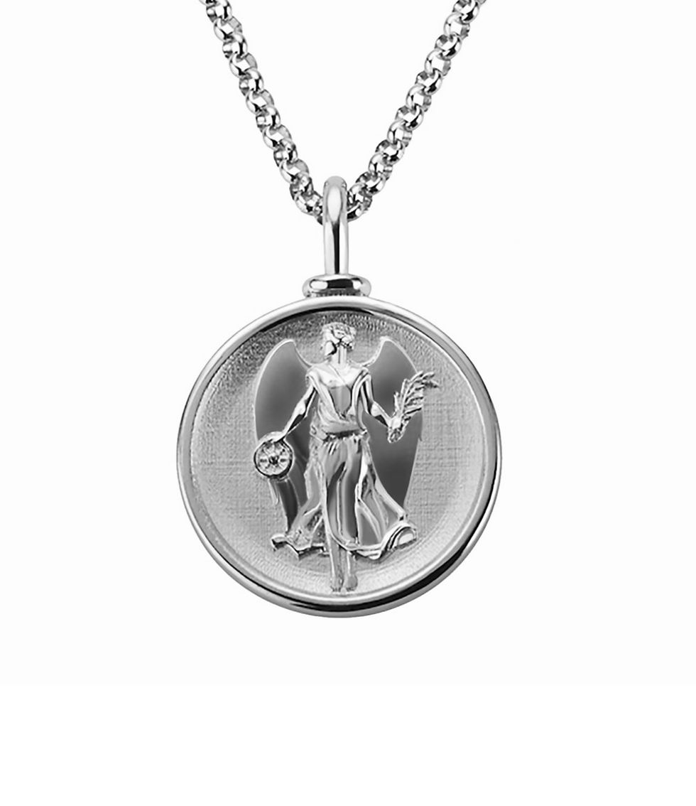 Schutzengel Amulett, d=16mm mit Brillant an Erbskette in 925er Silber/rhodiniert