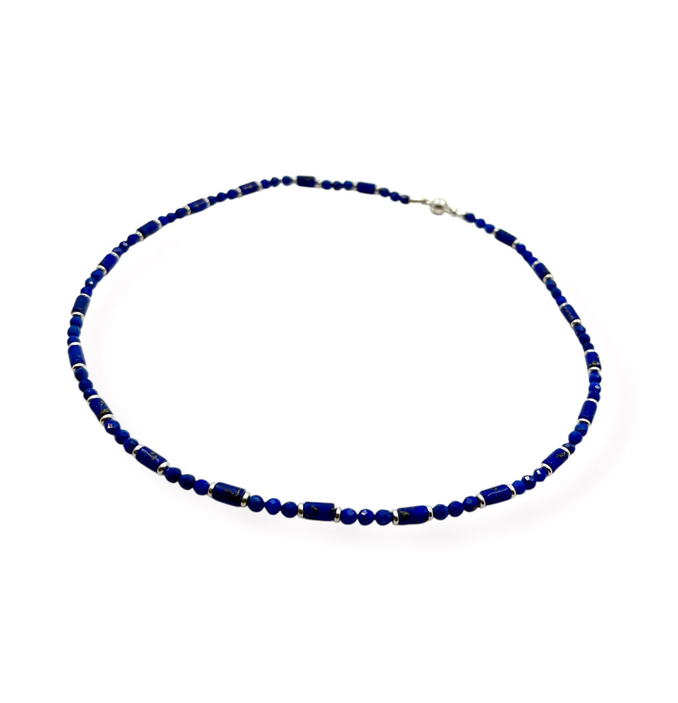 Lapislazuli Collier mit Magnetkugel-Schließe in 925er Silber/ rhodiniert